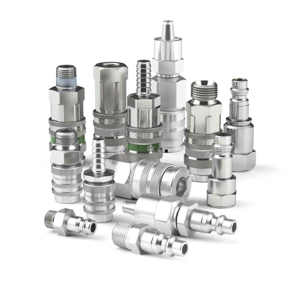 Välj mellan invändig gänga, utvändig gänga och slang stolpe, finns även att beställa med NPT gänga och Stream-Line efter förfrågan.