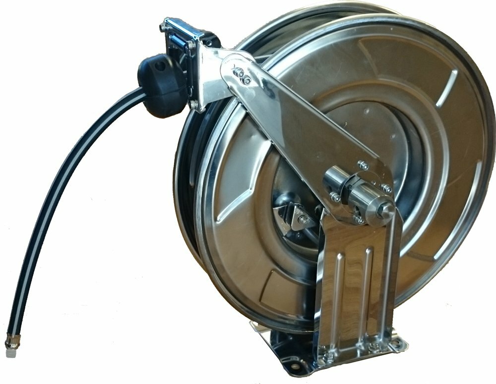 Öppna upprullare i stål med rostfri axel (AISI 304), lämplig för hårda miljöer. Den högkvalitativa kraftiga slangen är lättviktig och armerad vilket gör den passande för industribruk. Upprullarens fullflödes-svivel är designad med PU Ether packning, väl lämpad för verktyg upp till 25l/s.