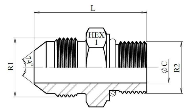 Adapter tillverkad i AISI 316-L rostfritt stål.