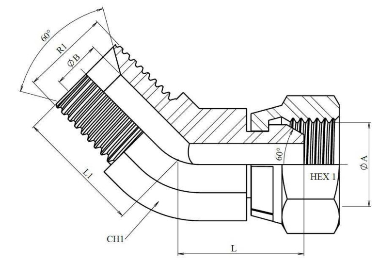 Vinkelkoppling 45° NPT-NPSM 3/4"