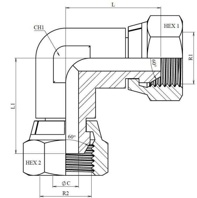 Vinkelkoppling 90° BSP 60° Invändig 1"