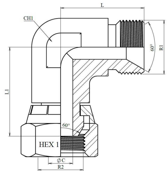 Vinkelkoppling 90° BSP 60° Invändig - Utvändig 1/8"