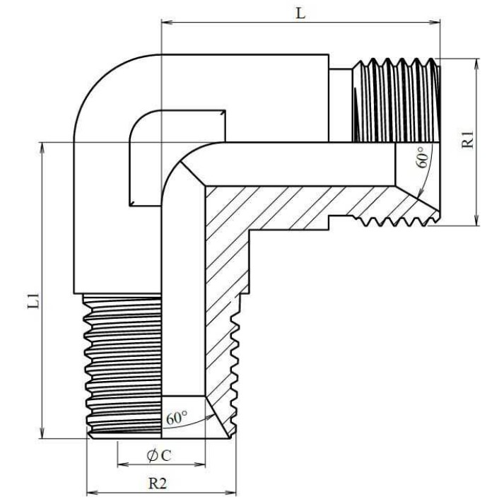 Vinkelkoppling 90° BSP 60° - NPT 1/2"
